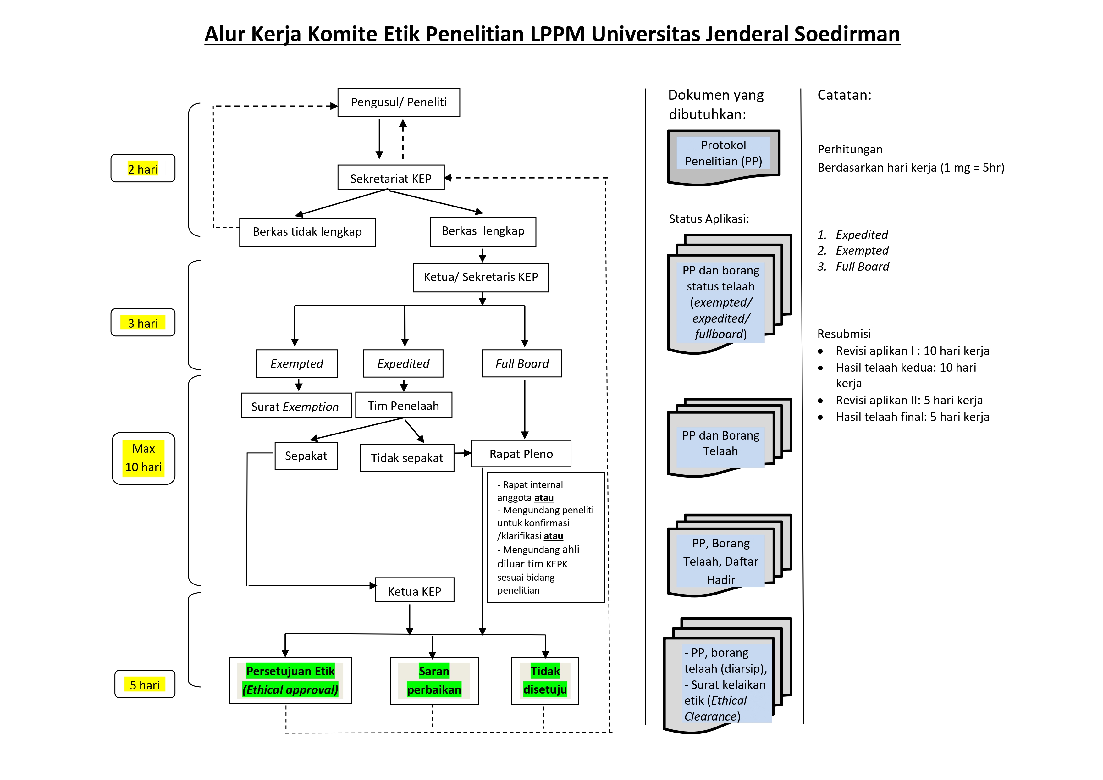 - Lembar Persetujuan Kelaikan Etik (EC) dilengkapi dengan nomor Kelaikan Etik, tanggal dan tanda tangan Ketua KEP LPPM Unsoed.